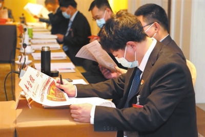 会议期间,党代表阅读《丰台报》。原梓峰/摄