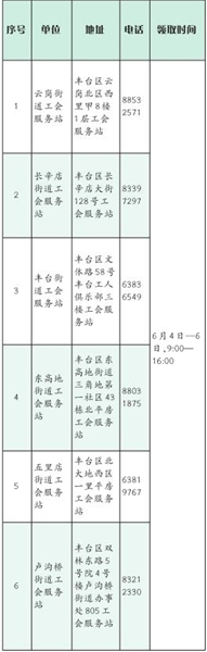 本报讯(记者 李娜)您是高考考生家长吗?您是丰台区工会会员吗?都是!那么恭喜您,6月4日至6日,可以在规定时间内凭工会会员京卡和考生准考证信息到丰台区总工会指定点位就近登记领取一份伴考包,里面包含雨衣、雨伞、毛巾、遮阳帽、扇子等伴考物资。每个家庭限领一份,数量有限,发完为止。