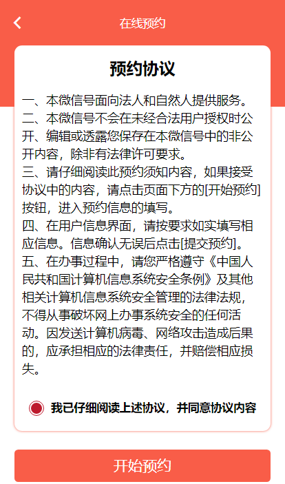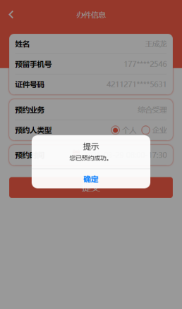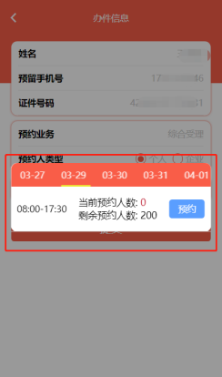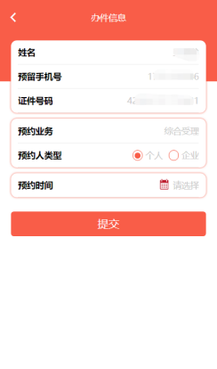 第六步:选择预约类型,分为个人预约或企业进行预约。按提示输入完整信息,选择需要预约的时间,提交预约即可。