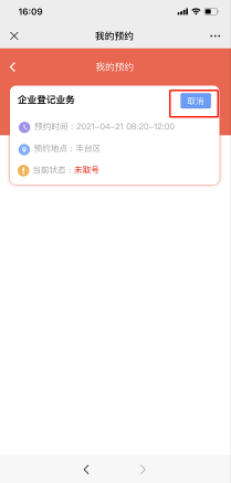 点击“我的预约”,展示个人已经预约列表,点击“取消”可取消当前预约。