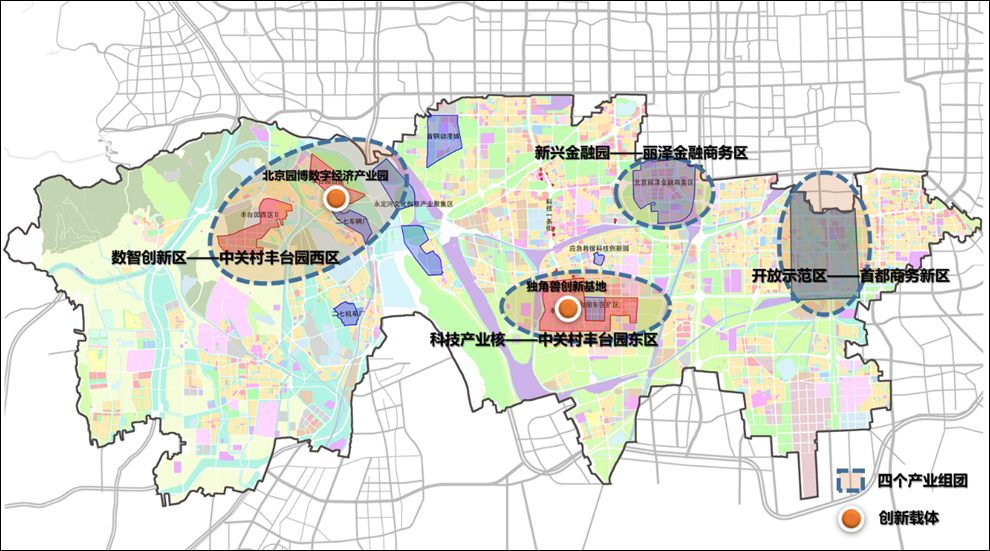 落实丰台分区规划“一轴、两带、四区、多点”总体空间布局,紧紧围绕“四区”高精尖产业承载主体,以土地集约高效利用为目标,加快产业链、创新链、资金链、人才链等要素整合,提升中关村丰台园产业承载和创新辐射能力,引导丽泽金融商务区高端化、特色化发展,加快推动全方位开放、国际化创新的首都商务新区建设。