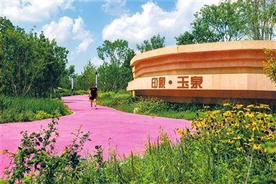 近日,“印象·玉泉”公园正式亮相,呈现一派绿意盎然的景象。绚烂的粉色步道巧妙地将园内景观紧密相连,吸引不少居民和游客前来打卡,享受轻松与惬意。姜灏 摄(详见03版)