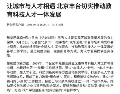 9月12日,北京市“一把手发布·京华巡礼”丰台专场亮相,向外界递上一张“机遇之城”的名片。截至9月14日18时,“一把手发布·京华巡礼”系列丰台区专场发布会媒体报道已达240余条,包括新华社、人民日报、经济日报、科技日报、经济参考报、人民网、央广网、北京日报、新京报、北京青年报、中国城市报、香港大公报等多家权威媒体报道。相关新媒体阅读量达千万+。相关报道还在持续释放。本期《丰台时报》选登部分报道,带大家读取媒体眼中的首都高质量发展丰台篇章。