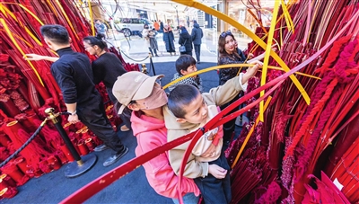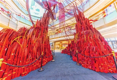 本报讯(记者 林瑶 原梓峰)近日,记者在丰台区北京丽泽天街看到,由红色竹节、竹筒、竹条组装而成的高10米的艺术互动空间正式亮相。群众纷纷在特制的竹条上写下新年祝福和愿望,装点在艺术空间中,开启年味儿十足的新春佳节。