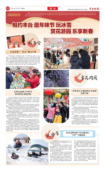 编者按:龙年春节将至,年货消费进入旺季,第二届新发地年货节暨集采集配节在北京新发地农产品博览中心开幕;首科大厦雅吉年味节六大板块邀市民一起相约首科;世界花卉大观园的春节福利安排上啦,植物园里各处张灯结彩,充满着浓浓的欢庆氛围,辞旧迎新的活动丰富而有趣;北京园博园首届冰雪乐园已经开园,一系列缤纷活动体验“冻”感来袭。