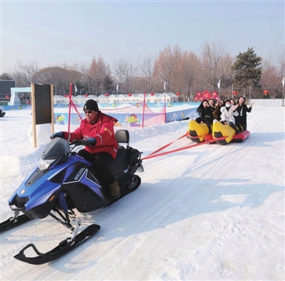 冰雪乐园活动主打冰雪运动与传统文化融合,包含冰雪运动、冰雪娱乐、市集美食等在内的一系列缤纷活动体验“冻”感来袭。在北京园博园3号门广场近1.8万平方米的冰雪乐园中,不仅可以体验到雪圈、雪橇板、雪上迷宫、雪地寻宝、雪地悠波球、香蕉船、雪上转转、雪上挖掘机、雪上小坦克等丰富趣味动感的冰雪娱乐项目,雪场周围还设有冰雪市集,汇聚了包含美食、非遗和冰雪趣味等元素,提前感受到年味儿与热闹劲儿。此外,文旅深度融合全面升级体验的冰雪乐园,还面向游客提供一系列包括围炉煮茶、汉服古风体验等时下流行的国风国潮新玩法。