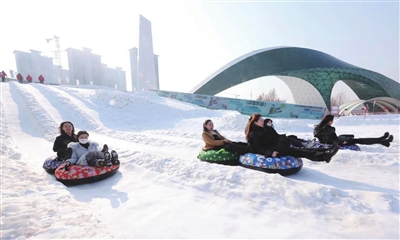 北京园博园冰雪乐园搭建了 “S弯”雪圈滑道