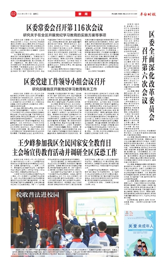 会议传达学习了中央深改委第三次、第四次会议和市委深改委第八次、第九次会议精神,听取了丰台区2023年“微改革、微创新”经验总结推广工作有关情况和关于进一步巩固和深化行政区划调整成效有关情况,审议了《丰台区委全面深化改革委员会2024年工作要点》《丰台区2024年接诉即办“每月一题、每月一办”推动解决重点民生诉求问题工作方案》。