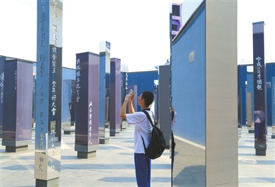 北京市第十二中学的一位同学在“只有红楼梦·戏剧幻城”拍照留念。