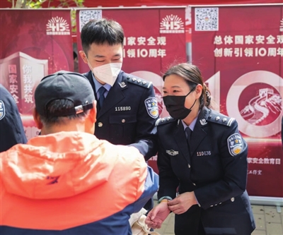 本报讯(记者 张馨予 张怡飒 郭晓妍 姜灏 赵自谦 通讯员 刘浩然)今年,是习近平总书记提出总体国家安全观10周年,4月15日是第九个全民国家安全教育日。当日,丰台花园总体国家安全观主题教育基地作为主会场开展集中宣传教育,王佐镇佃起村作为活动分会场同日举行资源安全主题教育活动。有奖竞答、防诈科普、警犬互动、义诊服务……现场依托安全教育主题,开展了形式多样的延伸活动,吸引了周边居民纷纷前来打卡参与。