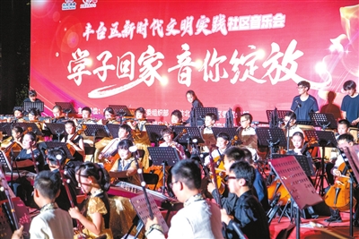 本报讯 7月19日,怡海花园社区内,刚刚吃过晚饭在小区里散步遛弯的居民们,被社区文化广场上传来的二胡、琵琶弹奏的《我爱你中国》乐声吸引,纷纷前往观看——这是丰台区创新举办的“学子回家 音你绽放”新时代文明实践社区音乐会活动。据了解,结合2024“丰台·学子回家”系列活动,丰台区文明办把“文明会客厅建设”与此有机融合,统筹社区、学校等文化教育资源,拓宽基层治理路径,激发学子“反哺社区”“建设社区”热情,深入开展社区音乐会,让百姓在家门口也能欣赏“交响乐”。