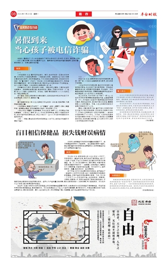 本报讯 暑假到了,不少学生都拿到了被家长封印已久的手机:打游戏、刷视频、网购……放松心情没问题,放松安全警惕不应该。暑期是学生被电信诈骗的高峰期,在享受暑假的同时,也一定要注意防范诈骗。