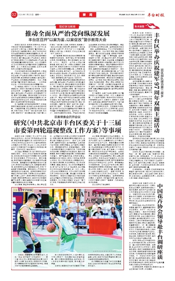 本报讯(通讯员 李承橙)按照中央、市委关于党纪学习教育的部署要求,7月25日下午,丰台区召开“以案为鉴、以案促改”警示教育大会。区委书记王少峰强调,要深入领会习近平总书记关于全面加强党的纪律建设的重要论述,进一步把严的基调坚持下去,以学纪知纪明纪促进遵纪守纪执纪,着力健全全面从严治党体系,把党纪学习教育成果转化为纵深推进全面从严治党、推动区域高质量发展的生动实践。会上,区委副书记、区长初军威传达全市警示教育大会重要讲话精神。区人大常委会主任高峰、区政协主席李岚、区委副书记蒋达峰出席。