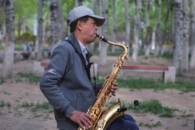 居民在家门口的公园享受音乐、放松身心。赵自谦 摄