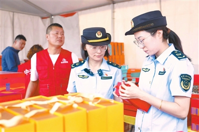 丰台区市场监管局对月饼销售专区开展现场检查。