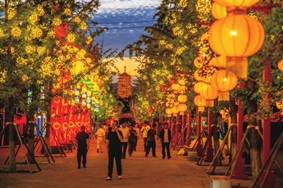 设计感十足、撞色搭配的花灯组件将节日元素、城市发展理念淋漓尽致展现。原梓峰 摄