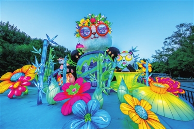 熊猫彩灯戴上了炫酷的“眼镜”。原梓峰 摄