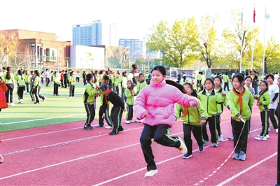 今年8月13日北京市教育委员会印发了《优化全市义务教育学校学生在校作息时间安排指导意见》,要求全市义务教育学校原则上落实15分钟课间时长。更长的课间怎么玩?近日,记者先后到辖区几所学校进行探访,发现不少学校的课间活动凝聚了老师和同学们的巧思。图为课间,孩子们在操场“撒欢儿”。李娜 贾慧娟 文 薛嘉茵 摄 (详见06版)