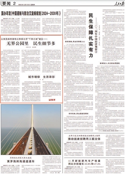 《人民日报》要闻版2024年12月12日刊发《从南苑森林湿地公园看北京“千园之城”建设——无界公园里 民生细节多》报道:昔日的皇家苑囿,正成为首都南部的生态“绿肺”,也成为群众休闲娱乐、运动健身的生活乐园,让“人民城市”更加可感可及。