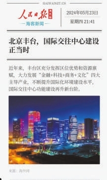 《人民日报海外版》2024年5月23日刊发《北京丰台,国际交往中心建设正当时》。