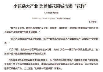 人民网首页头条2024年10月29日刊发《小花朵大产业 为首都花园城市添“花样”》:丰台正聚力打造千亿级花卉产业,全力塑造“北京第一花园城区”新名片。