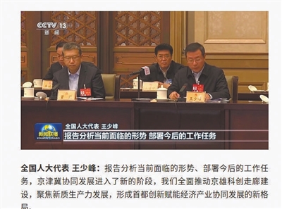 中央电视台《新闻联播》栏目2024年3月6日播发《代表委员议国是:履职尽责谋发展 凝心聚力开新局》:丰台区全面推动京雄科创走廊建设,聚焦新质生产力发展,形成首都创新赋能经济产业协同发展的新格局。