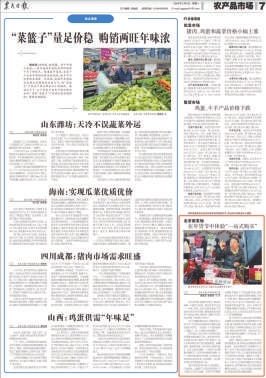 《农民日报》2024年2月5日刊发《北京新发地 在年货节中体验“一站式购买”》:新发地年货节暨集采集配节,不仅有新鲜的海鲜、水产、肉类和果蔬,还有来自全国各地的美食佳肴,让市民体验“一站式购买”。