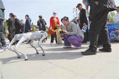 在网络安全、科技安全展区,区委网信办现场宣讲普及网络安全知识;区委保密办详细讲解保密有关要求;区科信局、区密码管理局就当前科技发展情况及增强密码意识、筑牢信息安全防线对现场市民群众进行科普;区档案局对档案法的重要意义进行宣传。除相关部门外,展区另一侧汇聚了奇安信、数盾科技、中认CA、骅远科技、世航智能等多家高新技术企业,市民通过体验AI换脸、了解商密设备、与机器人和虚拟数字人互动等方式,直观感受科技安全、网络安全和数据安全的重要性。握手、摇头、趴下、站立……