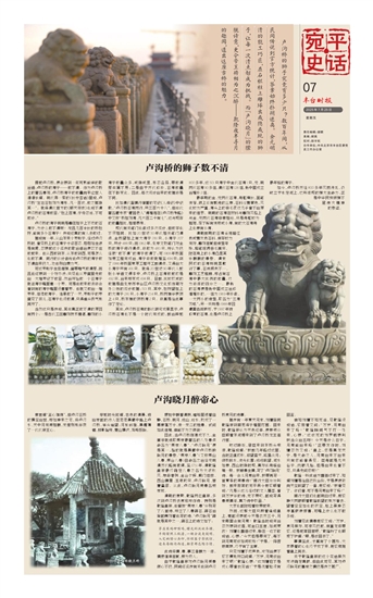 提起卢沟桥,便会想到一句耳熟能详的歇后语:卢沟桥的狮子——数不清。作为卢沟桥上的著名景观,卢沟桥狮子的数量向来让世人津津乐道。明代蒋一葵的《长安客话》里说,卢沟桥“左右石栏刻为狮形,凡一百状,数之辄隐其一”。就连清代官方的《顺天府志》也说不清卢沟桥的石狮数目:“栏上百狮,子母忽觅,不可数计。”