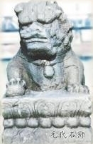 最早期的金、元两代石狮,身躯瘦长,面部狭窄,颈上系有飘逸的丝带,石料浅青黄色,风化较为严重,狮头上的卷毛花纹几乎看不出原来的细节。明朝的石狮在材料与雕刻风格上与金、元两代石狮非常相近,只是身躯较为粗短,足下踩有绣球或小狮,有的大石狮身上也带有小狮。