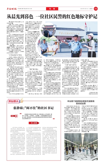 社区民警的日常工作琐碎而具体:在宛平县衙景点检查安全施工事宜,到商铺提醒经营者捂好“钱袋子”谨防电信网络诈骗,指导“宛平哨兵”志愿服务队队员开展巡逻工作……以辖区为家,把群众的事挂在心上,这就是丁黎亮的日常。