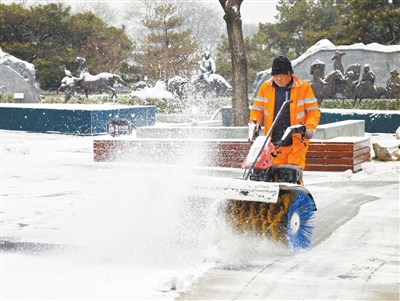 12月12日,北京迎来今冬首场降雪,丰台全区各单位发动干部群众下沉一线,冒寒清雪除冰,用忙碌身影筑牢安全防线。
