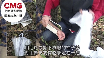 手臂骨折:可以使用报纸、杂志、雨伞等随身物品作为支撑物,用毛巾或衣服袖子等将手臂与支撑物绑定在一起,最后将手臂固定在脖子上。