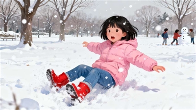 记得选择,有凹凸深纹的防滑鞋。高跟鞋接地面积小,硬平底鞋摩擦系数小,都非好选择。
