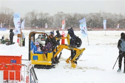 “玩冰雪活动赶上下雪天,真是太应景了!这里的活动项目也很丰富,大小朋友都能撒欢儿,冬天的氛围感简直太足了!”带着孩子前来体验游玩的韩女士说道。