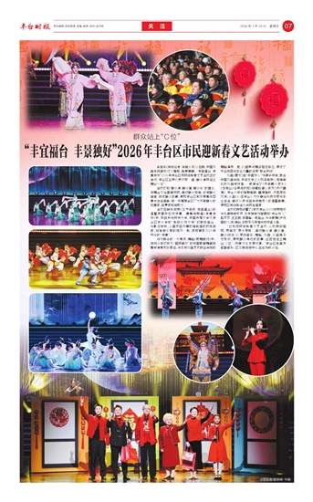 本报讯(特约记者 孙颖)1月22日晚,中国戏曲学院剧场灯火璀璨、暖意融融,“丰宜福台 丰景独好”2026年丰台区市民迎新春文艺活动正式举行,丰台区各界代表欢聚一堂,群众演员站上舞台“C位”。