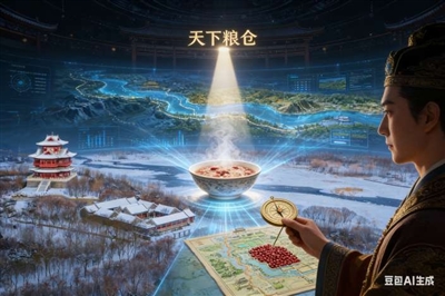 北京园博园,“天下粮仓”数字展厅悄然呈现。中央,一碗真实的腊八粥热气氤氲,一束光从中升起,如同一粒被唤醒的种子。光束在空中展开为巨大的3D生态地图,展示永定河古今地貌演变,叠加古代漕运路线与现代湿地修复方案。