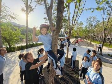 作为新域新质教育场景的重要载体,乐学公园打破校园围墙,让城市绿地成为全域自然教室,120所中小学与公园深度结对,形成覆盖全区的课程实践网络;同时,打造社区美育橱窗,以石榴庄街道彩色学安路为载体,打造“马路诗歌街区”,通过错落布局学生原创诗歌与中外经典名句,将百米社区道路重塑为可阅读、可互动的诗意美学空间。