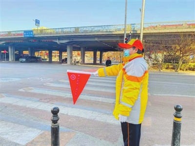 3月2日早上八点左右,记者来到丰台区赵公口桥下光彩路与南三环中路交叉路口处,此时东铁匠营街道公共文明引导员中队队长程保兰正在和队友们有条不紊地指导行人快速通过斑马线。“现在是绿灯,请大家快速通过,注意脚下安全。”每当绿灯亮起,她们都会配合引导动作一遍遍地重复着这样的话。这样的文明引导工作,程保兰已经坚持了十年,十年来无论刮风下雨、酷暑严寒,她都按时到达工作点位,为市民的出行保驾护航。