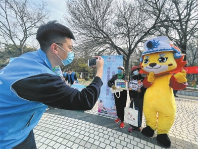 记者在创城展台看到,不少小朋友争先恐后地拿着“当好主人翁 共创文明城”“文明丰台YYDS”的手板与“丰丰”玩偶合影留念。“绿色环保是文明、礼让行人是文明、垃圾分类是文明……”李秀女士正在教3岁的小孙女《文明行为促进条例》上面的顺口溜儿,“《条例》虽然听起来严肃,但是里面的内容对孩子养成良好的行为习惯至关重要,创建文明城区也是给孩子们树立榜样。”李秀说。