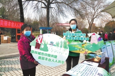 2022年,为构建高效有序的全国文明城区创建工作体系,提升丰台区居民对创城工作的知晓率、支持率和参与率,区创城办与区创森办联合举办“全城找‘丰丰’,为城市添新绿”活动,工作人员身着“丰丰”的玩偶服向过往居民派发关于创城、创森的宣传册,并邀请他们拍照打卡,完成打卡即可领取一套以创城和创森为主题元素定制的明信片。同时,有意向的居民还可以现场报名参加3月12日植树节活动。