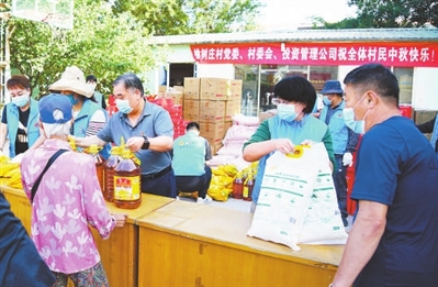 本报讯(记者 李娜)中秋节将至,丰台区榆树庄村村委会大院里再次热闹了起来,9月2日至3日,连续两天,村民们开着私家车来到村委会领取村里发的中秋节慰问品——稻香村月饼礼盒、金龙鱼五常大米、鲁花花生油、沁州黄小米、中粮麦芯粉以及鲁花调料礼盒。榆树庄村共有村民2000余人,无论老少,过节慰问品每人一份,这份精心准备的沉甸甸的节日问候让每位村民都喜笑颜开、幸福感爆棚。