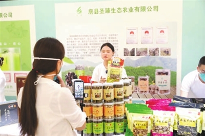 在湖北馆里,记者还吃到一款特别健康养生的零食-香菇脆。它是以郧阳香菇为主食材进行加工,酥脆咸香,令人爱不释“口”。因为郧阳香菇的生产基地位于秦巴山区,自然环境好、水源优质,而且种植香菇的菇树也都选用的是秦巴山区的木材,它比市面上的香菇肉质更厚、味道更浓郁,价格也公道,所以特别受欢迎。陈初葵介绍,郧阳区利用北京对口协作部分资金,因地制宜建成了郧阳区杨溪铺镇青龙泉集中安置区,彻底改变搬迁群众原有的生产生活方式,实现“挪穷窝、换穷业、改穷貌、拔穷根”。