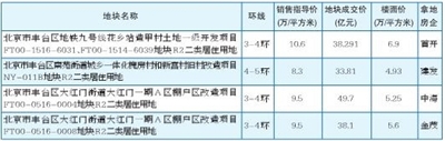 据悉,此次成交的4宗住宅用地分别为造甲村土地一级开发项目FT00-1516-6031、FT00-1514-6039 地块、城乡一体化槐房村和新宫村旧村改造项目NY-011B地块、大红门一期A 区棚户区改造项目FT00-0516-0004地块及大红门一期A 区棚户区改造项目FT00-0516-0008地块。