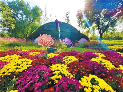 北京世界花卉大观园里的菊花文化节正如火如荼,万千菊花不仅让市民大饱眼福,更是渲染了喜庆党的二十大胜利召开的浓厚氛围。
