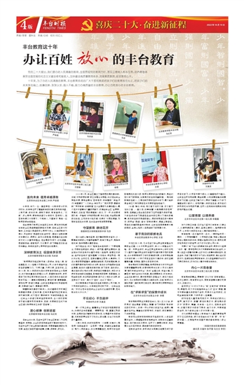 来丰台近十年,见证并经历了丰台区教育人为实现高品质、有特色、上台阶的目标做出的不懈追求和努力,见证并经历了丰台教育改革创新、布局谋篇取得的长足发展,能在这样的历程中做事、成事,很荣幸、很充实。