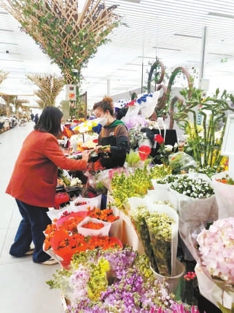 花卉交易市场的花农林丹早早来到了摊位,一边理货一边拿着手里的玫瑰花修剪,这日子以后就像这玫瑰花一样红红火火了。“党的二十大报告里描绘了美丽中国,使我深受鼓舞,绿水青山就是金山银山,坚持山水林田草沙一体化保护,就是保护我们花农的切身利益。”