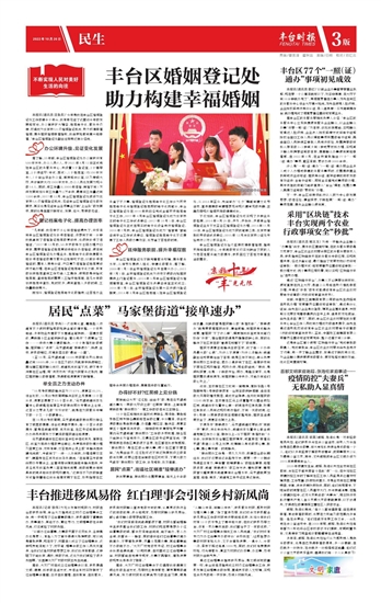 本报讯(记者 徐伟)为充分发挥村规民约、村民自治的积极作用,丰台大力推进成立村级红白理事会工作,进一步规范了红白喜事的操办,积极倡导了喜事新办、丧事简办、其他不办,勤俭节约、文明理事的社会新风尚,切实减轻了村民负担。