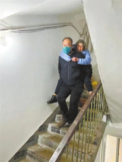 本报讯 近日,西罗园街道西马场北里社区22号楼1单元6层的一位卧病在床的老人家属清晨紧急向社区打来求助电话:母亲需要今天去看病,家里住在六楼,家人都不在京,只有女儿一人无法将母亲抬下楼,社区能否给予帮助。接到居民的求助,半宿忙于大数据核实、凌晨又准备核酸筛查的社区书记常宝晨立刻带领社区干部来到居民家中,二话不说蹲下身将老人背上,还不忘细心叮嘱家属为老人多穿衣服,外面有雨别冻着。“太谢谢社区了,你们辛苦了,但是看病回来可不可以帮我再把老人背上去,咱们约个时间。”老人上车后,老人女儿不好意思地说。“您随时吧,回来前打电话,我们一定来人,您安心看病,我先去忙”,常宝晨如是说,骑上电动车一溜烟赶回核酸现场去了。