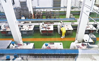 项目分两期建设,其中一期是肉牛屠宰项目,建设屠宰车间1.5万平方米、年屠宰加工10万头肉牛生产线1条、分割包装线4条,安置就业150人,已于去年9月建成投产。主要生产冷鲜肉、中温肉、热鲜肉、肥牛产品、小包装产品、调理品六个系列300多个品类。